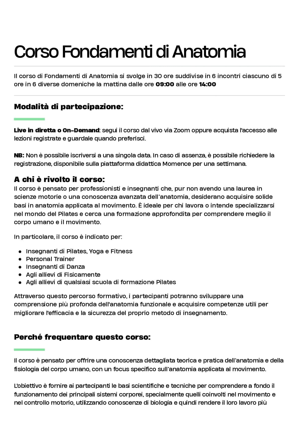 FONDAMENTI DI ANATOMIIA : 30 ORE