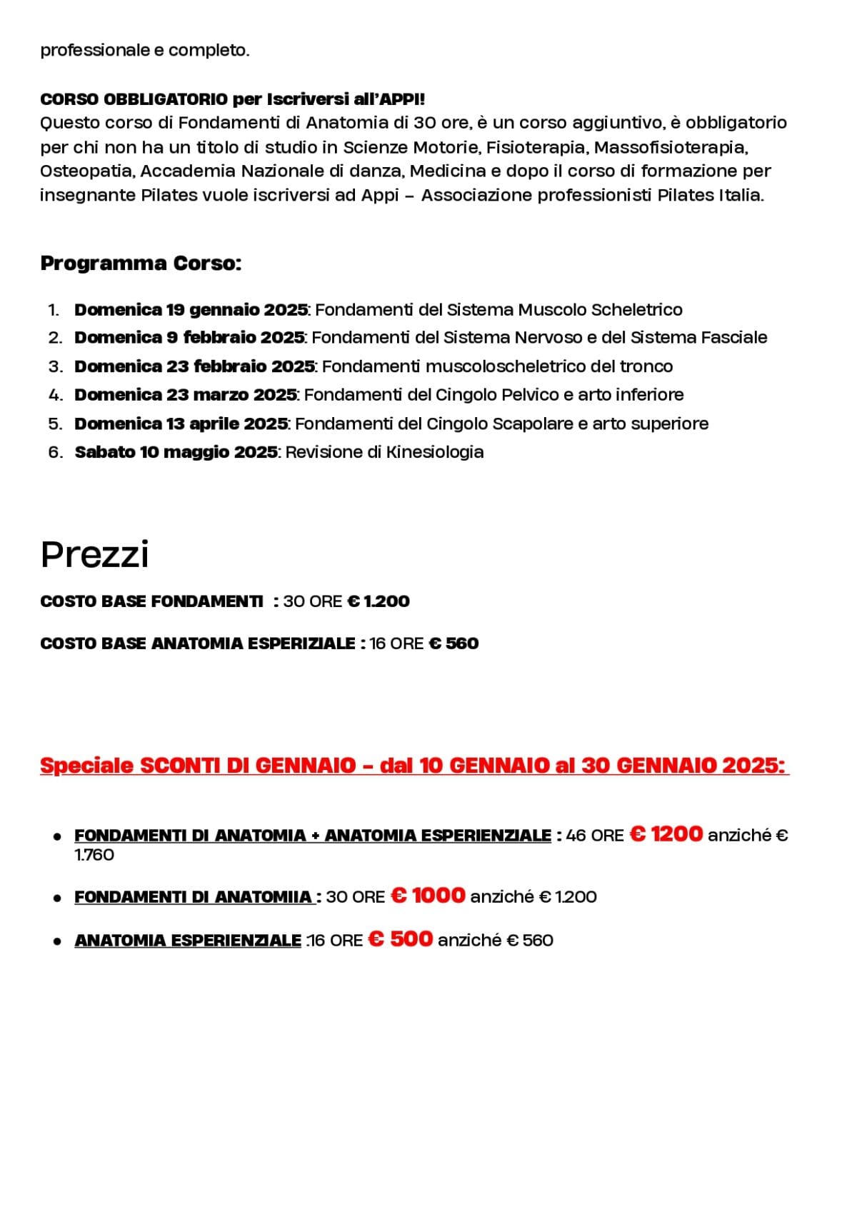 FONDAMENTI DI ANATOMIA + ANATOMIA ESPERIENZIALE : 46 ORE